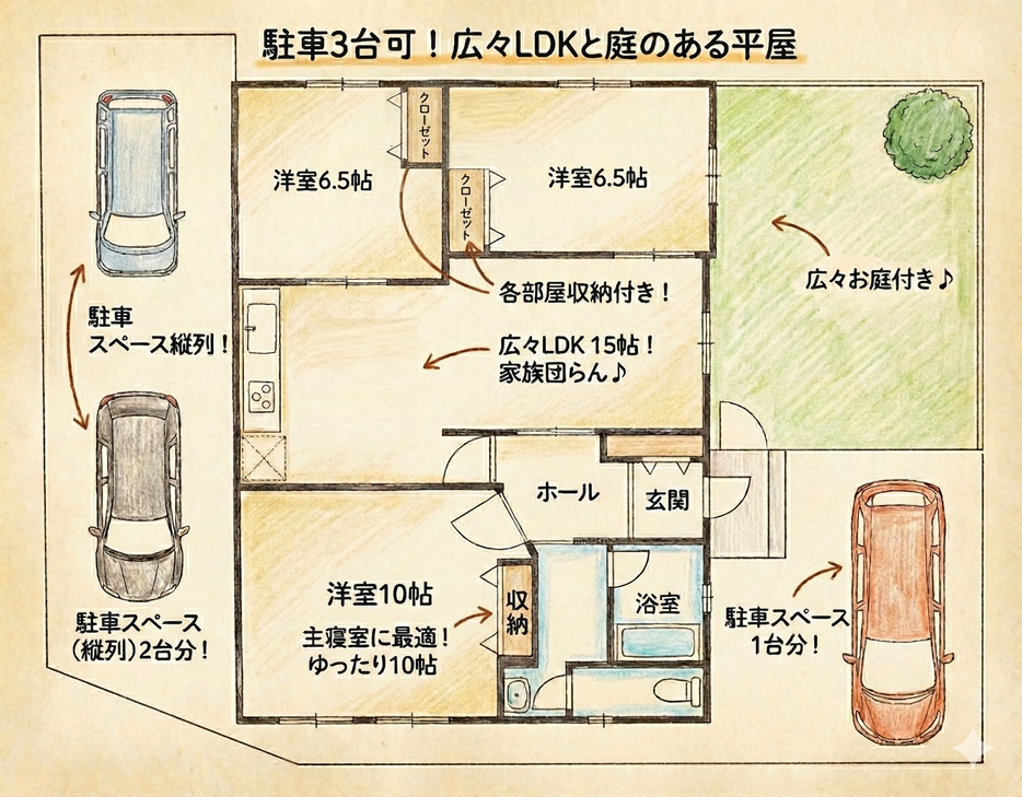 敷地内には駐車場を3台確保可能。